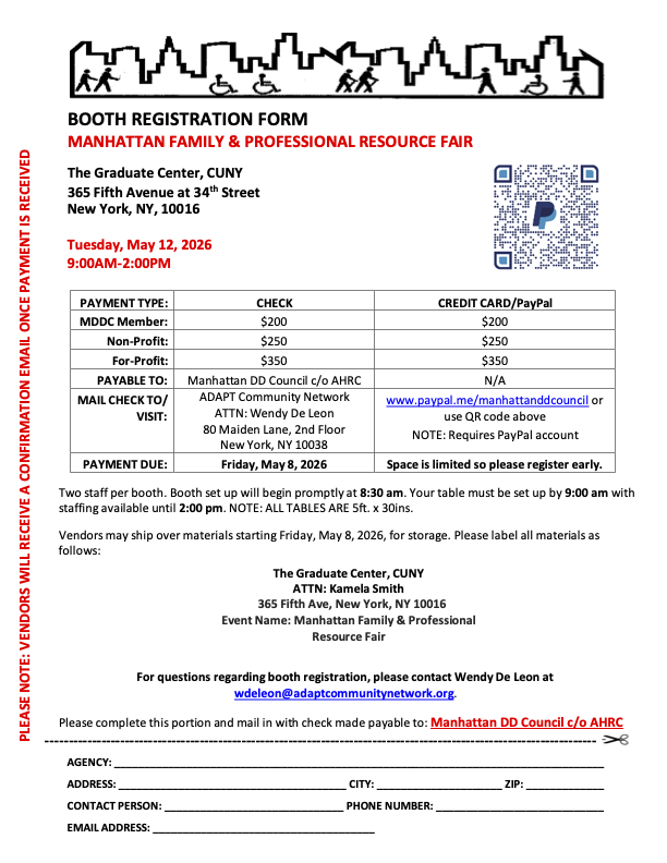 For questions regarding booth registration, please contact Wendy DeLeon at wdeleon@adaptcommunitynetwork.org.
